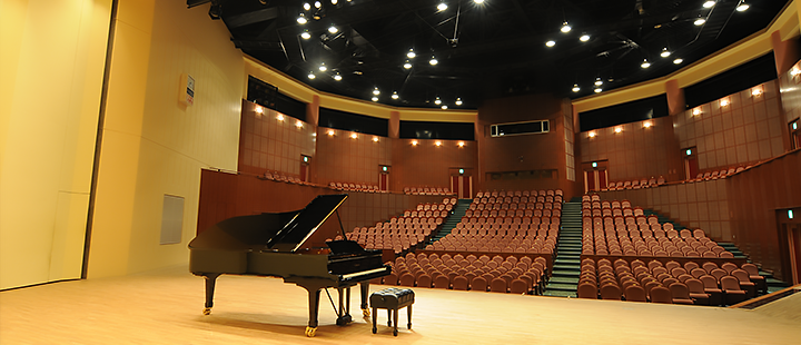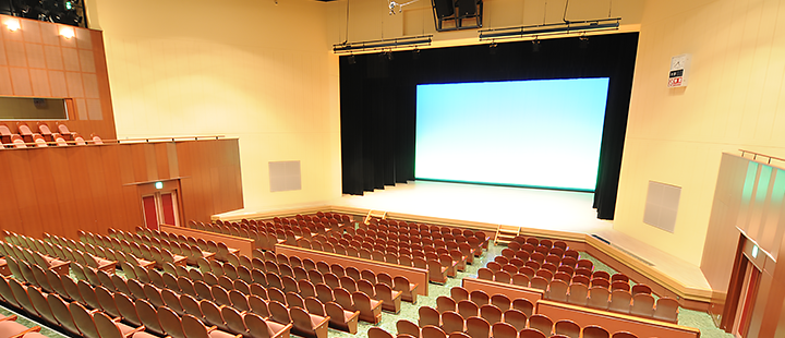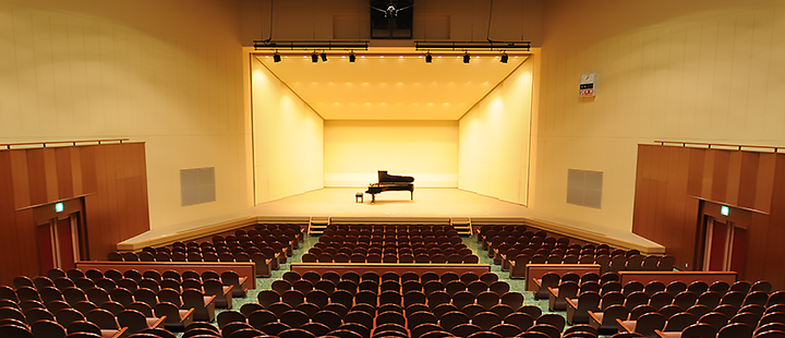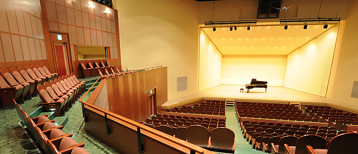 調整室、映写室、反響板、幕類、ピアノ1台、大道具