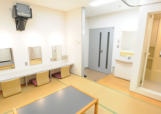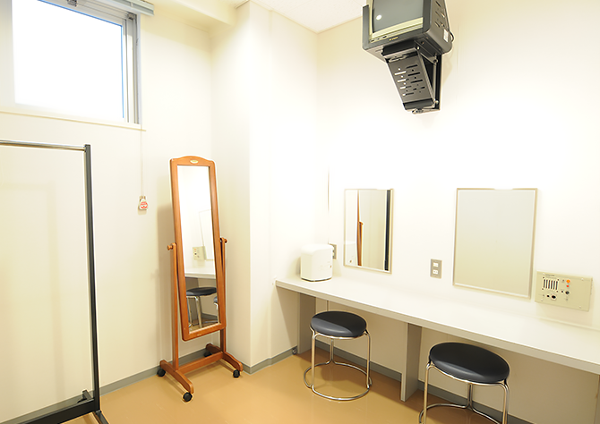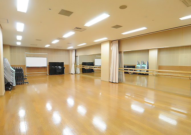 音楽、舞踊、バレー、ダンス等および日常の練習会場。91.0㎡、ピアノ1台 楽屋事務室